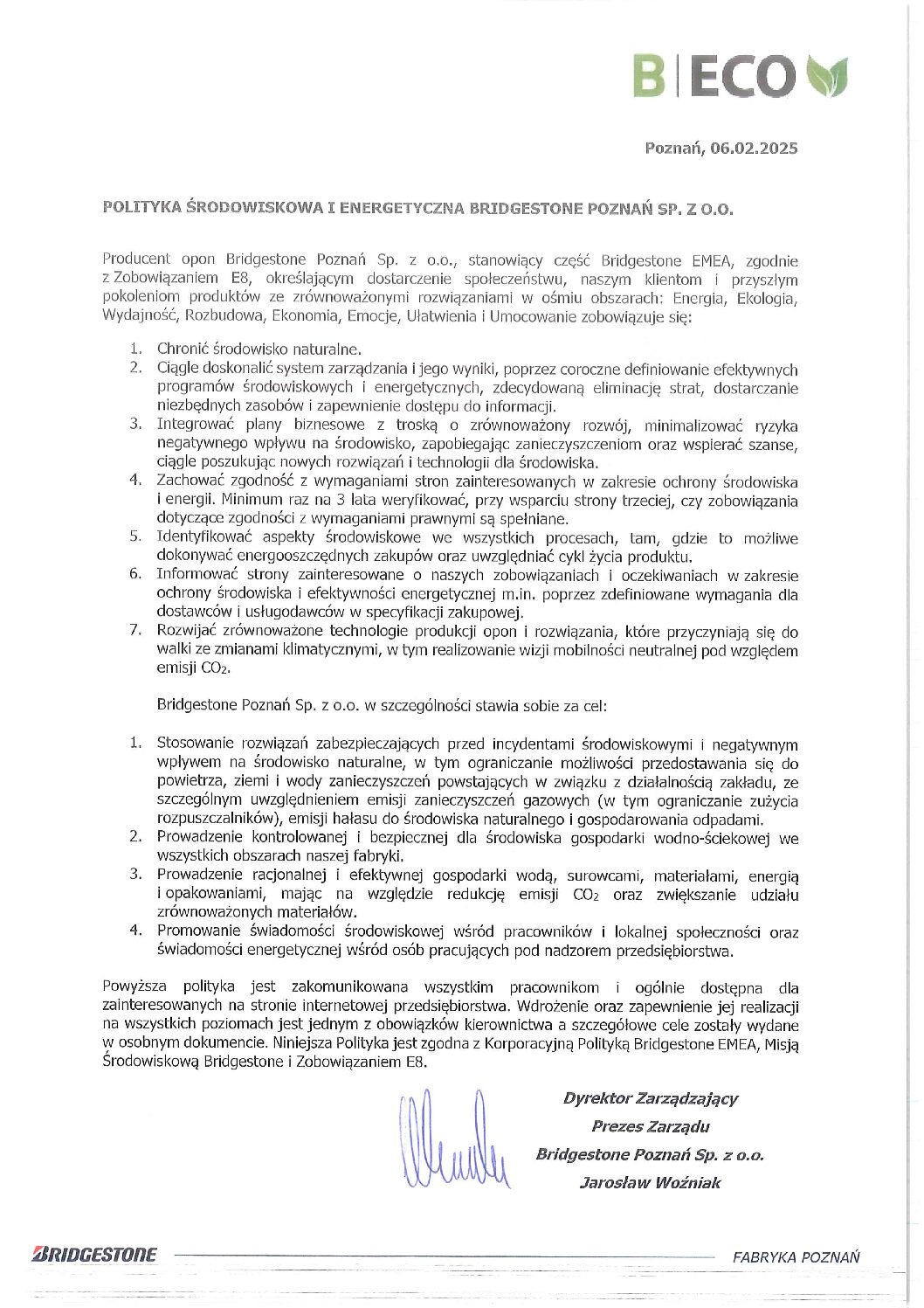 Dążymy do tego, aby być najlepszą Fabryką, w której opony tworzone są przez zaangażowanych, odpowiedzialnych pracowników o biznesowym podejściu do realizowanych zadań. Chcemy, aby społeczeństwo miało świadomość tego, że zapewniamy naszym pracownikom bezpieczne miejsca pracy i dbamy o otaczające nas środowisko.